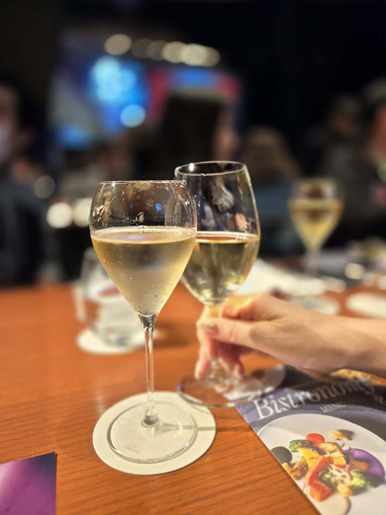 開演前、テーブルに並んだグラスに注がれたシャンパンで乾杯。