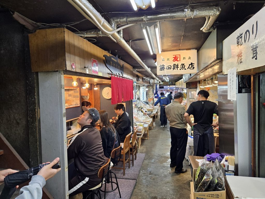 新鮮なネタが並ぶカウンターで、とろけるようなおまかせ握りを堪能しました。市場の活気溢れる雰囲気の中での朝食は格別(笑)
