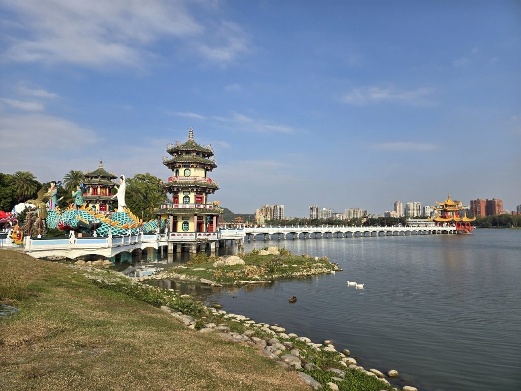 池に突き出た中国風の東屋からの眺めも美しく、高雄の風景を満喫できました。