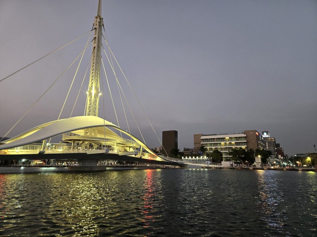 この大港橋は、なんと90度回転する可動橋で、船が通る際には橋が回転して航路を開ける仕組みになっています。