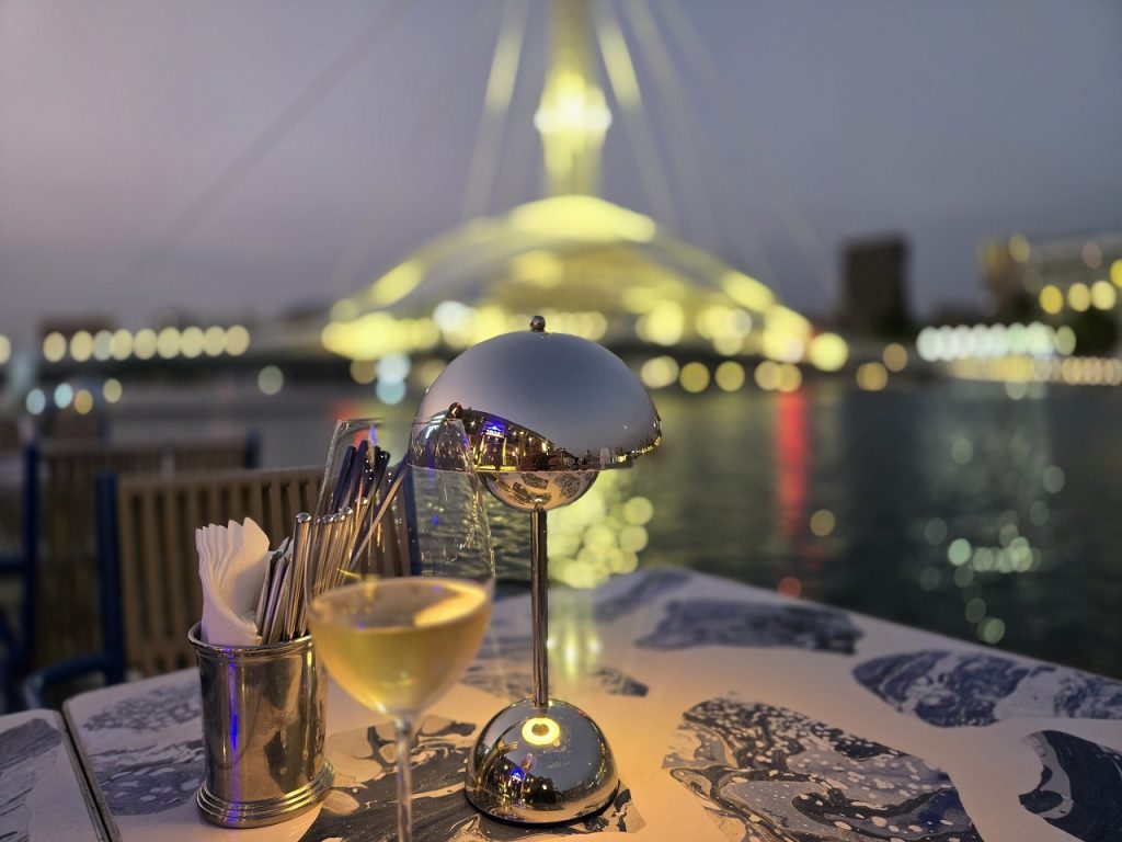 港沿いのレストラン「大港倉」では、おしゃれな雰囲気の中で食事を楽しむことができ、インスタ女子っぽい写真も(笑)